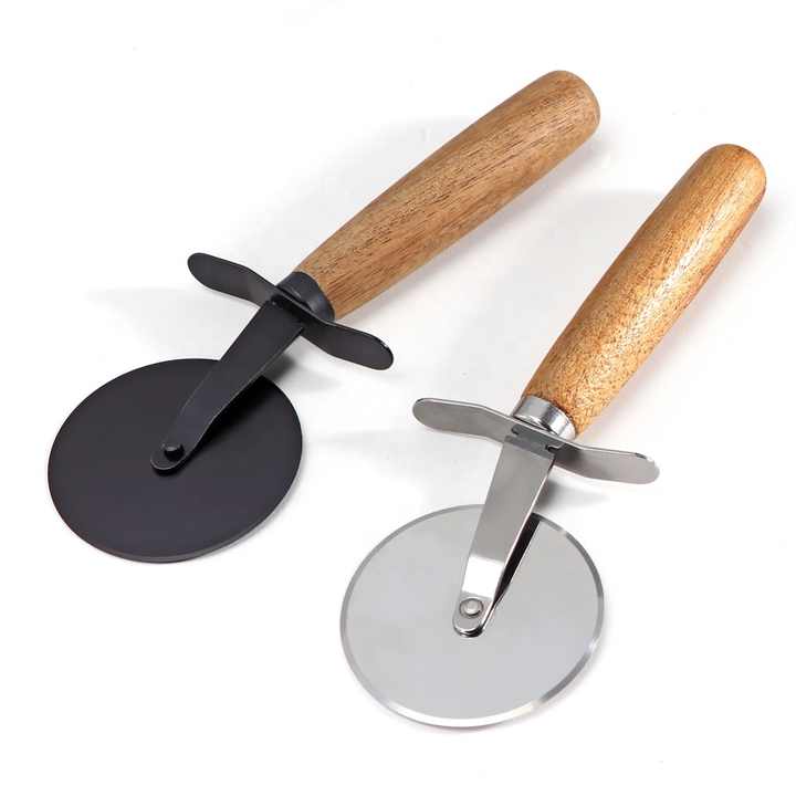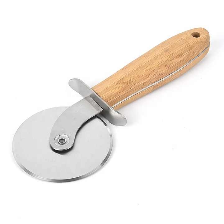 Stainless Steel Pizza Cutting Single Wheel Bamboo Handle Mesquite Knife Wooden Handle Roller Knife Baking Tools Wall Mountable