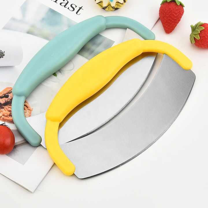 Stainless Steel Pizza Cut Plastic Handle Pizza Shaker Kitchen Gadgets Half Round Bread Knife