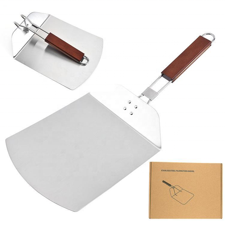 Stainless Steel Pizza Peel Shovel Foldable 14” Pala De Pizza Pizza Peel Oven Accessories With Wooden Handle Cutter