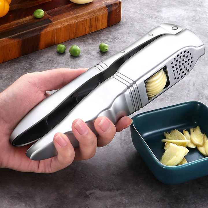 New Aluminum Alloy Portable Manual 2-in-1 Garlic Slicer Garlic Press Kitchen Gadget