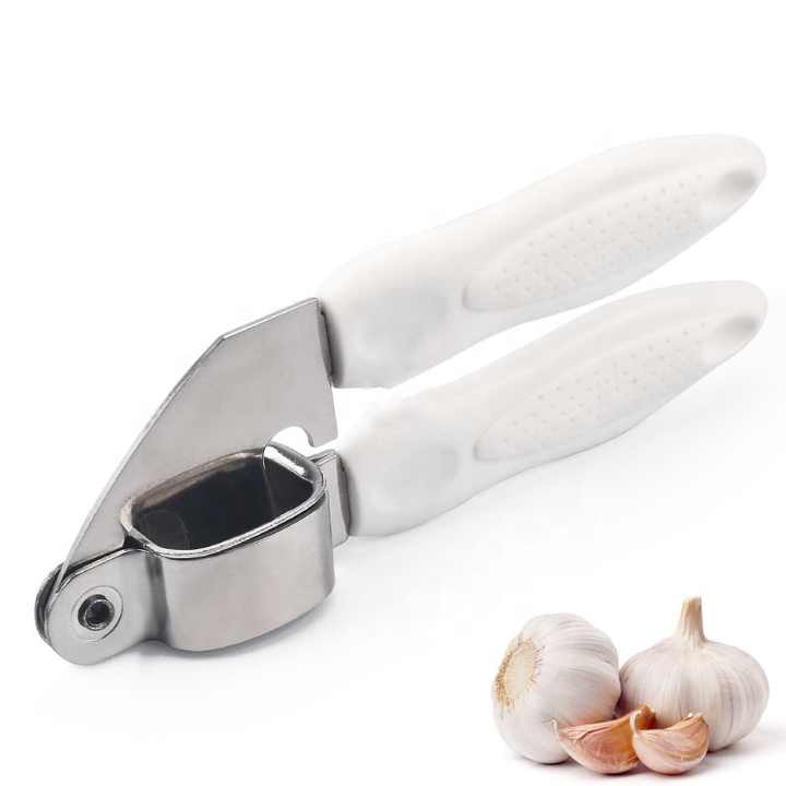 Creative Kitchen Gadgets Durable Stainless Steel Garlic Press White Handle Garlic Crushing Garlic Squeezer