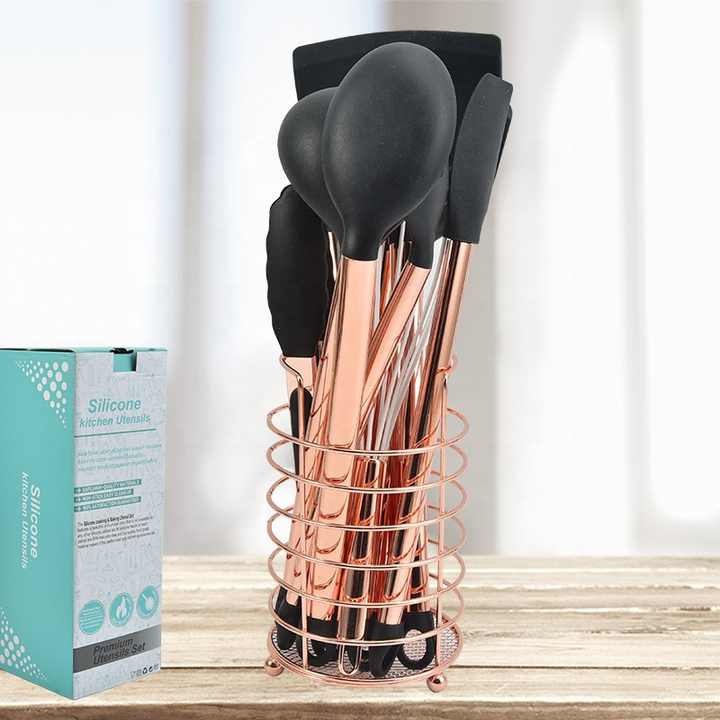 12pcs in 1 Set Kitchenware Non-Stick Accessories Silicone Cooking Kitchen Utensil Set Tools With Holder Box
