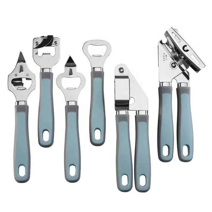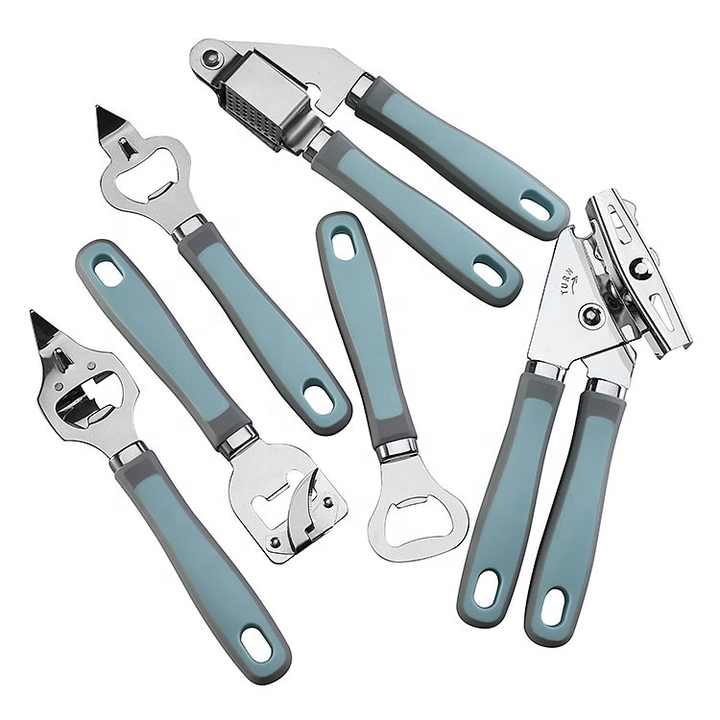 Creative Kitchen Gadgets Plastic Handle Stainless Steel Opening Tool Set Wine Bottle Jar Press Garlic Press