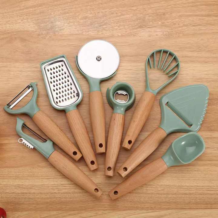 Beech Handle ABS Multi-functional Kitchen Gadget 8-piece Set Ice Cream Scoop Bottle Opener Ginger Grater Baking