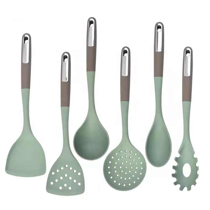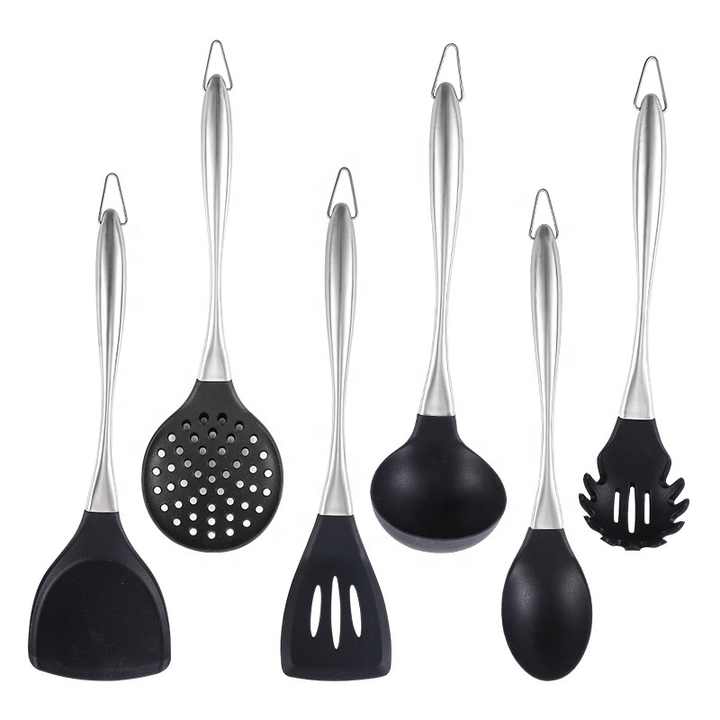 Silicone Cooking Utensil Set Kitchen Utensils Set With 304 Stainless Steel Handle 6 Pcs Kitchen Gadgets Tools Set Non-stick Heat
