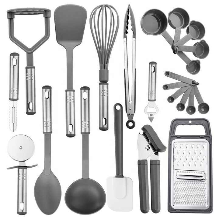 Silicone Utensils Set Kitchen 23 Pcs Nylon Set Non Stick Spoon Spatula BBQ Tools Bottle Opener Pizza Cutter Tools