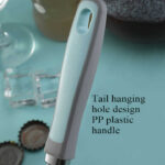 Features a modern combination of stainless steel heads and light blue gray handles. Each handle has a hole for easy hanging storage.