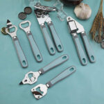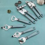 This set includes various bottle openers, a can opener, and other tools, catering to different needs such as opening beer bottles, soda cans, and food cans.