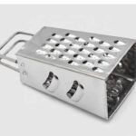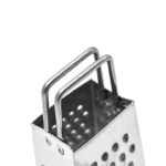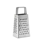 Featuring a traditional rectangular based, trapezoid shaped body with a sturdy metal handle, providing a secure grip during grating.