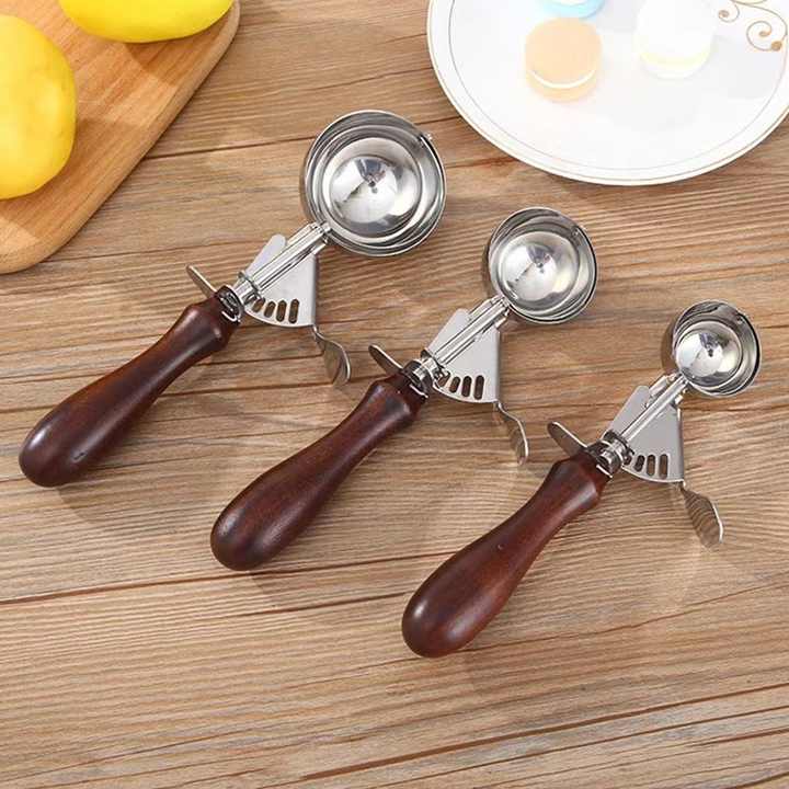 Stainless Steel 304 Ice Cream Scoop Mahogany Handle Dough Fruit Ice Cream Trigger Release Ball Digger