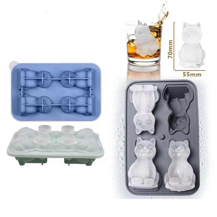 Wholesale Silicone Ice Cat Creative Ice Cube Tray Mold Cute Reusable 3d Three-dimensional Ice Grid Mold