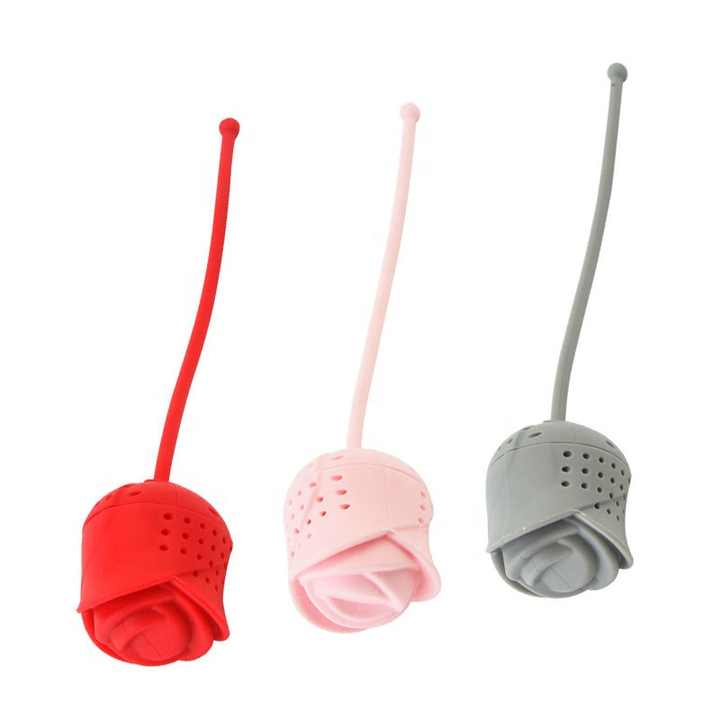 Creative Design of Silicone Cup Tea Set with Rose Shape Portable Reusable Long Handle Cup Creative Tea Filter