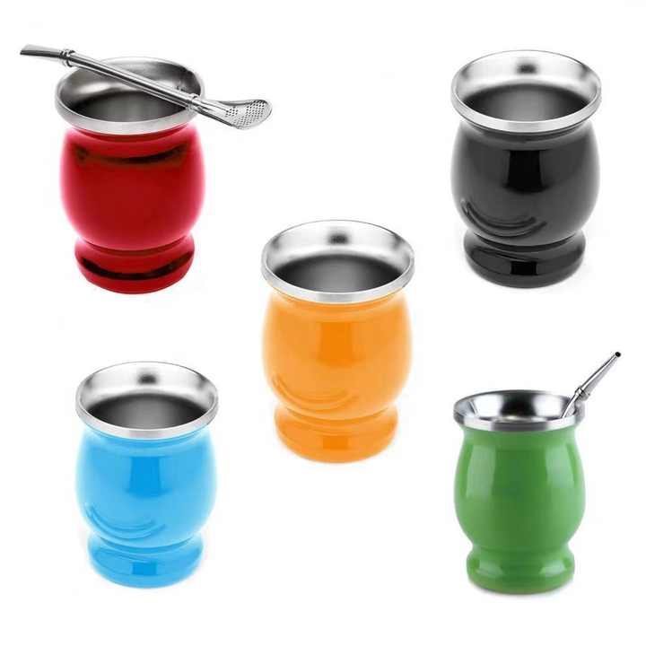 Premium Double Layer 8oz Yerba Mate Cup 8oz Stainless Steel Coffee Cup With Strainer Straw Mate Tea Cup