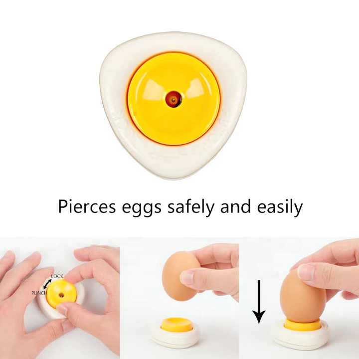 Semi-Automatic Hard Boiled Egg Peeler Raw Egg Opener Tool Egg Piercer With Non-Slip Magnetic Base and Safety Lock