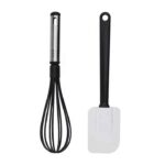 Features a blend of black and metallic silver elements, giving it a modern and professional look. The utensils have a sleek, ergonomic design for easy handling.