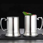 These mugs feature a sleek, polished stainless steel finish with sturdy, metallic handles. Their classic shape and minimalistic design make them suitable for various occasions.2. Functional Utility