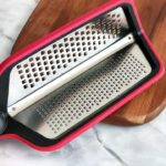 The handles are shaped for a comfortable grip, reducing hand fatigue during grating tasks, and each has a hole for easy hanging.