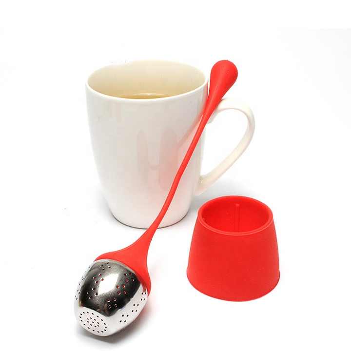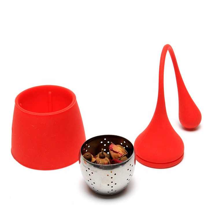 Stainless Steel Tea Strainer Silicone Loose Leaf Silicone Tea Infuser with Tray with Silicone Handle