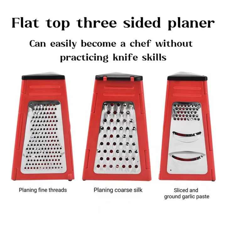 Wholesale Flat Three Side Kitchen Collapsible Stainless Steel Cheese Grater, Multi-functional Slicer Slicer