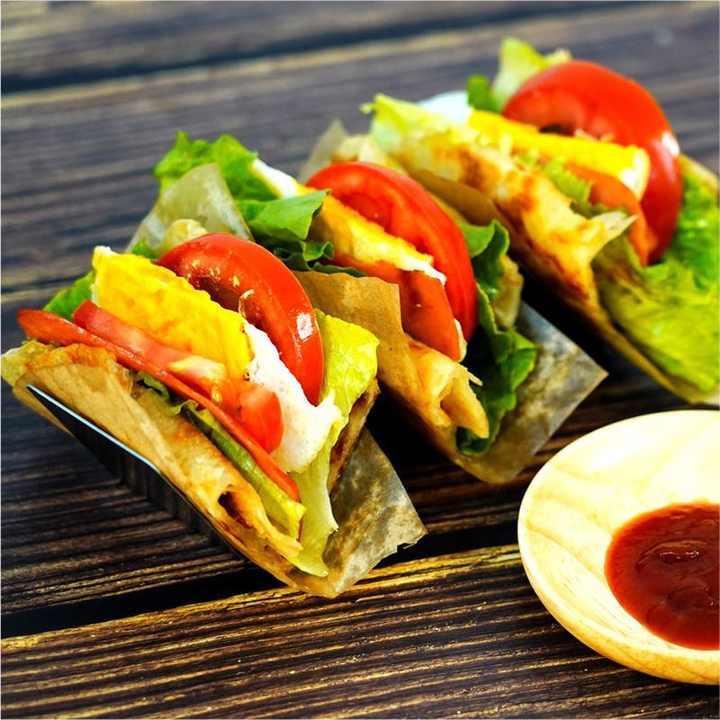 Ideal for holding tacos filled with various ingredients like meat, vegetables, and cheese. They keep tacos upright, preventing fillings from spilling out. -